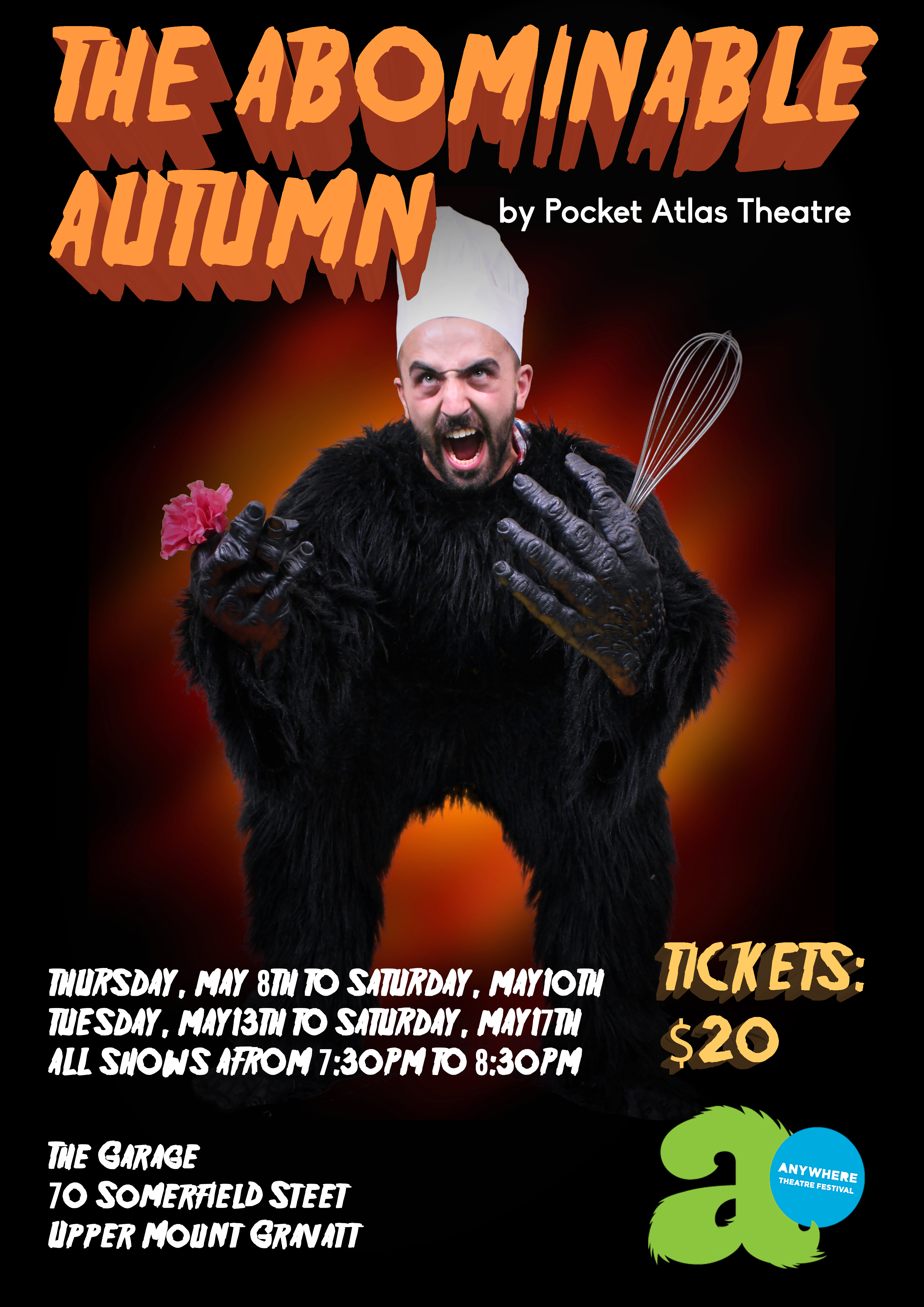 A two-hander originally written for The Anywhere Theatre Festival in Brisbane, Australia. The Abominable Autumn is a dark comedy which follows the rise and fall of a celebrity chef, a very hungry gay couple, and an ancient secret from the Canadian wilderness. The audience witnesses two narratives set on crash course with each other, culminating in a horrifying climax under the lugubrious moon. Uproariously funny, this show currently has plans to be imported to Canada for a Fringe Tour in the near future.
